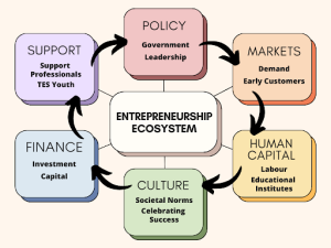 The term, ‘Entrepreneurship Ecosystem’, was born from those studies, and it is made up of the following: